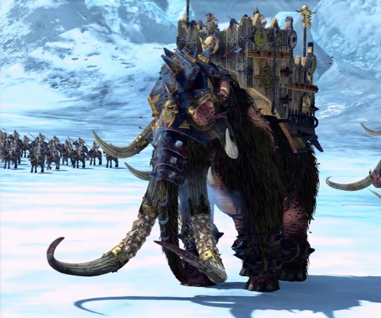 Speaking of War Mammoths, it should be noted that most of Norsca’s roster does not perform very well on Very Hard battle difficulty. Spamming Marauder Horsemen and Marauder Horsemen with Throwing Axes is affective against dwarfs in the early campaign, but will get shredded against guns, so while the player may have time to use them against Kraka Drak if they rush and they’re playing as Wintertooth (or WoC, which also has these units), they’re almost forced to resort to a doomstack if they want to win a campaign on very hard or legendary difficulty. That would be War Mammoths for Norsca or Ice Trolls for Wintertooth, adding a couple of fire mages with the Infernal Dominance trait into each army. The massive supply line penalties make it very difficult to field more than four armies on the higher difficulties, taking away the option of just overwhelming the enemy with numbers, although keeping all of the armies in raiding stance for as much time as possible can mitigate attrition enough to make this a viable strategy.