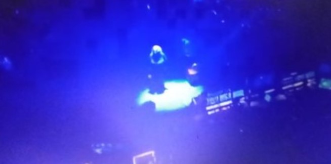 During the opening on Raw as Drew McIntyre stood on the ringbuckle, the cameras panned out for an ariel shot as spotlights shone around in the dark crowd. For just a moment, the cameras shone down on a lone figure with long, pale hair and a dark coat.