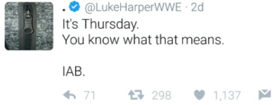 Luke Harper signed off Thursday’s daily “You know what that means” tweet with “IAB.” Many followers believe they do know … More